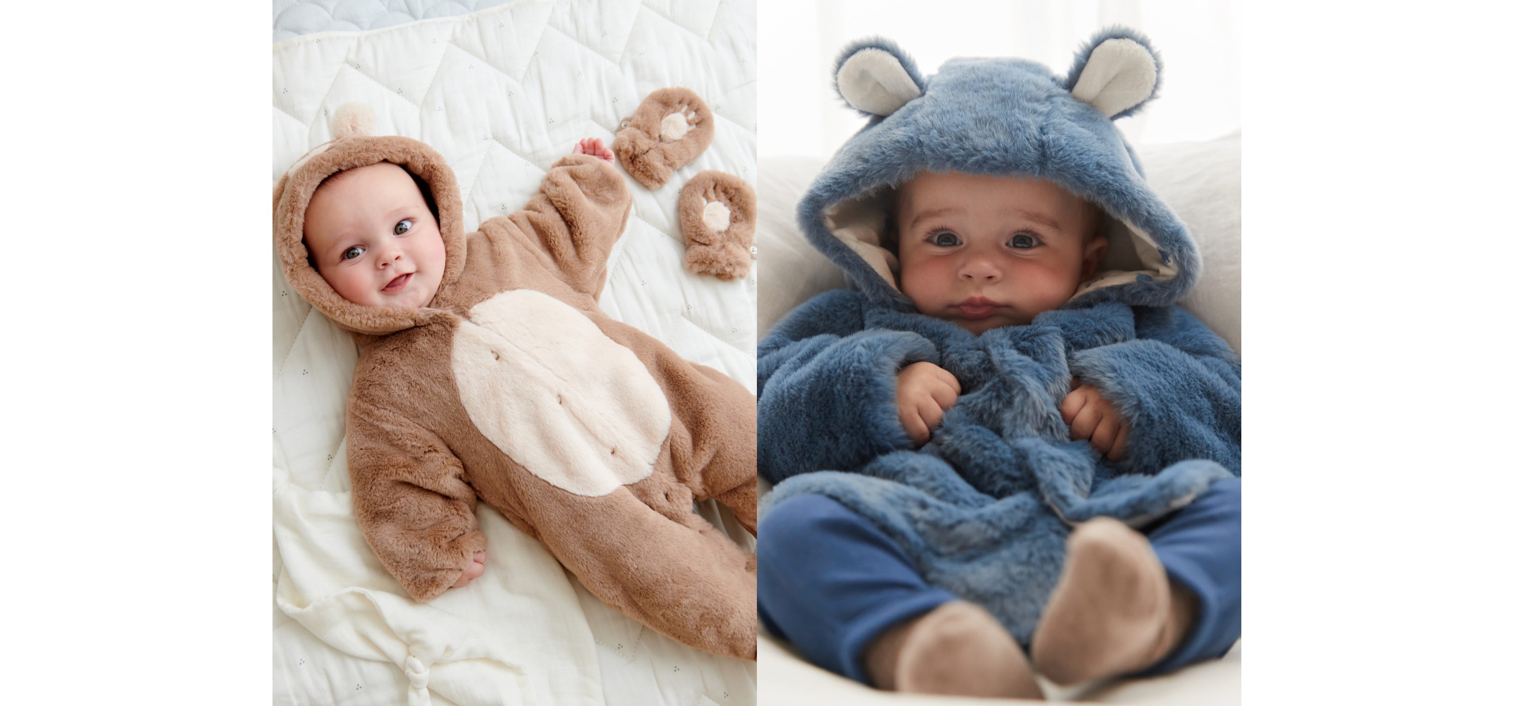 Chilly days and frosty nights call for the toastiest styles! Wrap little ones up for December with snuggly fleece pramsuits, snowsuits and warm baby coats, in bright shades or fun prints. We've got plenty to layer underneath too, from colourful co-ords to toasty socks.