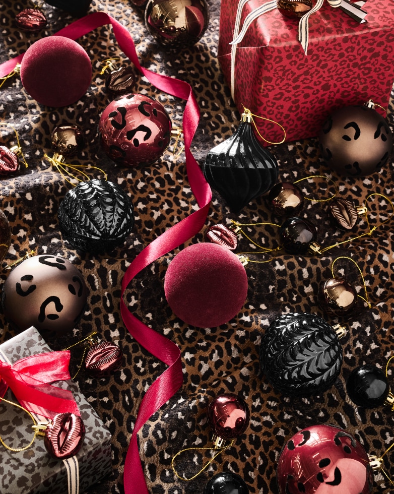 The Vintage Charm trend is a celebration of classic Christmas vibes, focusing on traditional reds, greens, and golds in timeless patterns. To embrace this style, decorate your tree with different sized baubles and a festive tree skirt. Extend the welcoming feel to your front door with a beautifully dressed wreath.