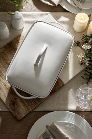 White Malvern Embossed Roasting Tray With Lid