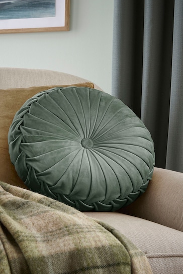 7.2.10 Buy Laura Ashley Green Velvet Fern Round Rosanna Cushion from the Next UK online shop Click here to use our accessible website