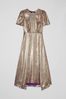 LK Bennett Purple Boyd Floral Print Metallic Silk Midi Dress