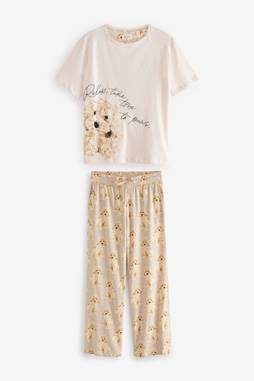 Ecru Cream Charlie Cockapoo Short Sleeve 100% Cotton Pyjamas