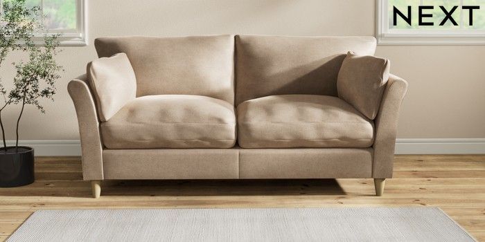 7.2.10 Buy Hartley Relaxed Sit 3 Seater Sofa Luxe Chenille Mid Camel Beige Low Conical - Light from the Next UK online shop Click here to use our accessible website