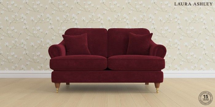 7.0.3 Buy Ambersham by Laura Ashley 2 Seater Small Sofa Alwyn Velvet Burgundy Red Low Brass Castor - Teak from the Next UK online shop Click here to use our accessible website