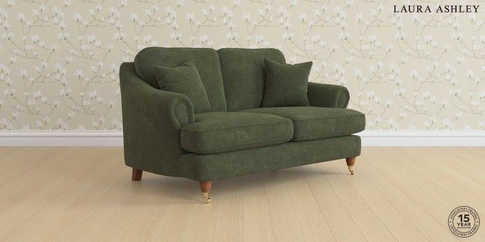 7.0.3 Buy Ambersham by Laura Ashley 2 Seater Small Sofa Alwyn Velvet Ivy Green Low Brass Castor - Teak from the Next UK online shop Click here to use our accessible website