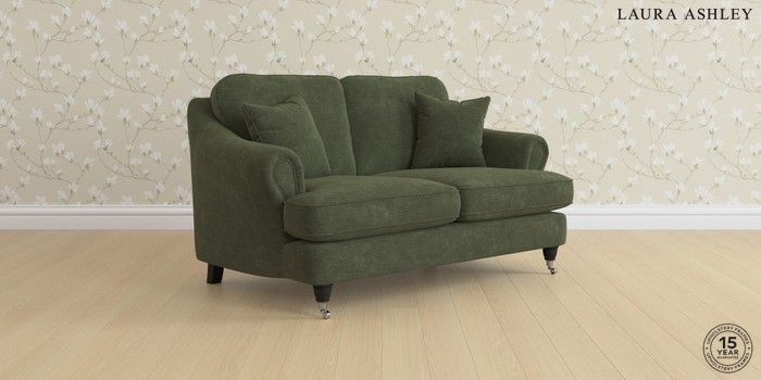 7.0.3 Buy Ambersham by Laura Ashley 2 Seater Small Sofa Alwyn Velvet Ivy Green Low Chrome Castor - Black from the Next UK online shop Click here to use our accessible website