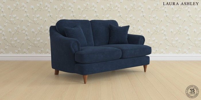7.0.3 Buy Ambersham by Laura Ashley 2 Seater Small Sofa Alwyn Velvet Midnight Navy Low Turned - Teak from the Next UK online shop Click here to use our accessible website