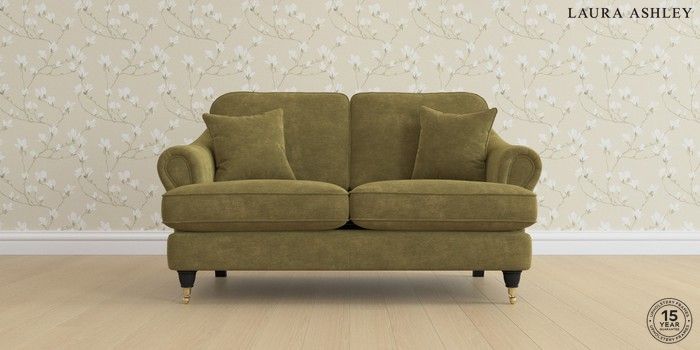 7.0.3 Buy Ambersham by Laura Ashley 2 Seater Small Sofa Alwyn Velvet Olive Green Low Brass Castor - Black from the Next UK online shop Click here to use our accessible website