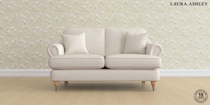 7.2.6 Buy Ambersham by Laura Ashley 2 Seater Small Sofa Anneliese Oyster Natural Low Chrome Castor - Light Oak from the Next UK online shop Click here to use our accessible website