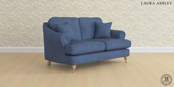 7.0.3 Buy Ambersham by Laura Ashley 2 Seater Small Sofa Bainton Midnight Navy Low Brass Castor - Light Oak from the Next UK online shop Click here to use our accessible website