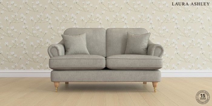 7.0.3 Buy Ambersham by Laura Ashley 2 Seater Small Sofa Bainton Pale Steel Grey Low Brass Castor - Light Oak from the Next UK online shop Click here to use our accessible website