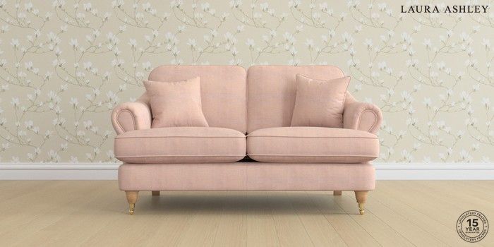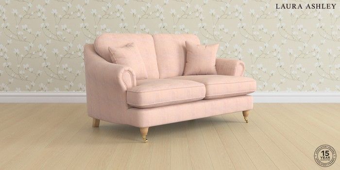 7.0.3 Buy Ambersham by Laura Ashley 2 Seater Small Sofa Edwin Chenille Blush Pink Low Brass Castor - Light Oak from the Next UK online shop Click here to use our accessible website
