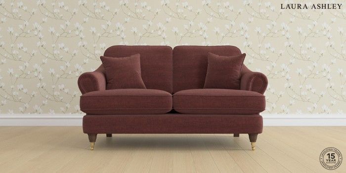 7.0.3 Buy Ambersham by Laura Ashley 2 Seater Small Sofa Edwin Chenille Burgundy Red Low Brass Castor - Chestnut from the Next UK online shop Click here to use our accessible website