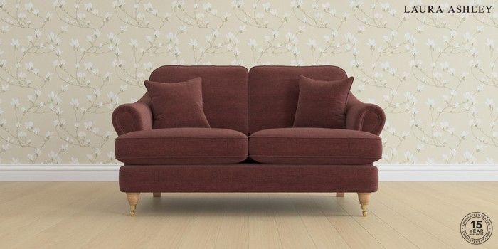 7.0.3 Buy Ambersham by Laura Ashley 2 Seater Small Sofa Edwin Chenille Burgundy Red Low Brass Castor - Light Oak from the Next UK online shop Click here to use our accessible website