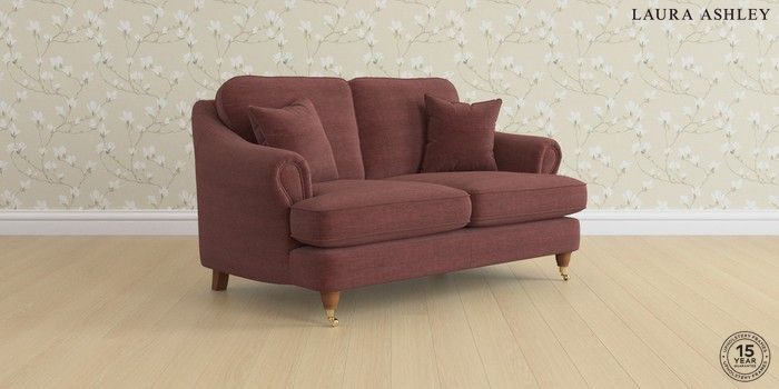 7.0.3 Buy Ambersham by Laura Ashley 2 Seater Small Sofa Edwin Chenille Burgundy Red Low Brass Castor - Teak from the Next UK online shop Click here to use our accessible website