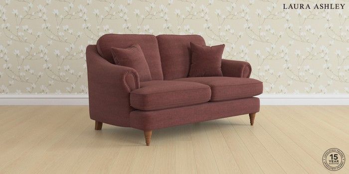 7.0.3 Buy Ambersham by Laura Ashley 2 Seater Small Sofa Edwin Chenille Burgundy Red Low Turned - Teak from the Next UK online shop Click here to use our accessible website