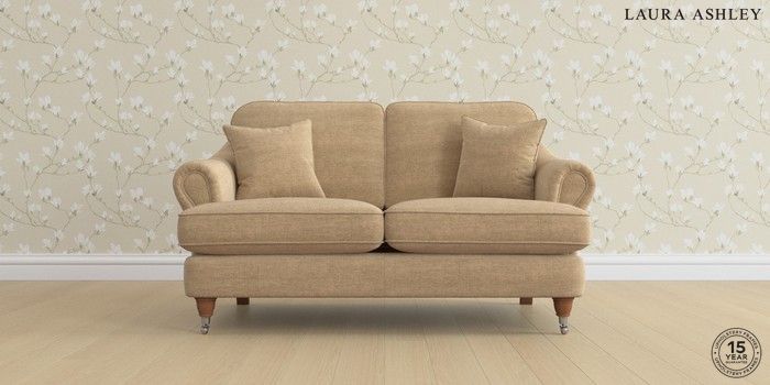 7.0.3 Buy Ambersham by Laura Ashley 2 Seater Small Sofa Edwin Chenille Gold Natural Low Chrome Castor - Teak from the Next UK online shop Click here to use our accessible website