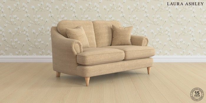 7.0.3 Buy Ambersham by Laura Ashley 2 Seater Small Sofa Edwin Chenille Gold Natural Low Turned - Light Oak from the Next UK online shop Click here to use our accessible website