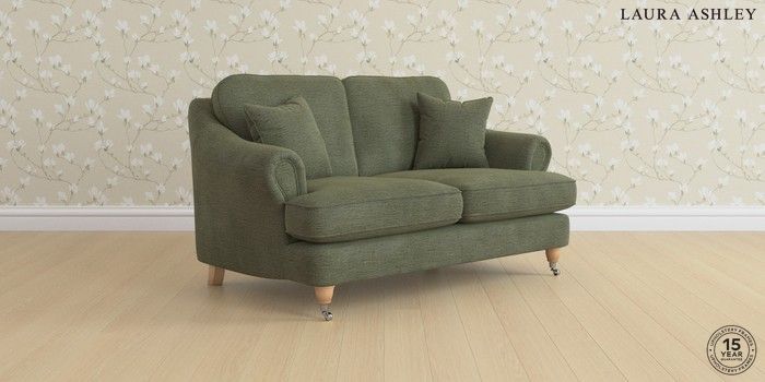 7.0.3 Buy Ambersham by Laura Ashley 2 Seater Small Sofa Edwin Chenille Hedgerow Green Low Chrome Castor - Light Oak from the Next UK online shop Click here to use our accessible website