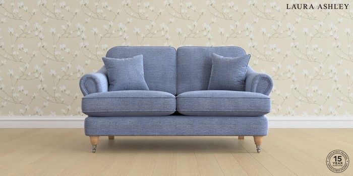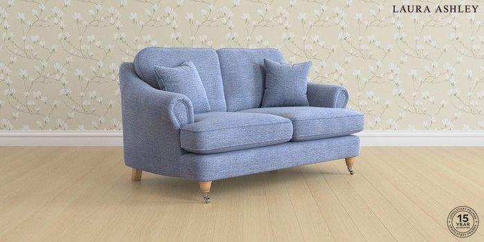 7.0.3 Buy Ambersham by Laura Ashley 2 Seater Small Sofa Edwin Chenille Seaspray Blue Low Chrome Castor - Light Oak from the Next UK online shop Click here to use our accessible website