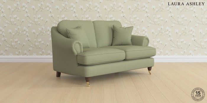 7.0.3 Buy Ambersham by Laura Ashley 2 Seater Small Sofa Edwin Herringbone Hedgerow Green Low Brass Castor - Chestnut from the Next UK online shop Click here to use our accessible website