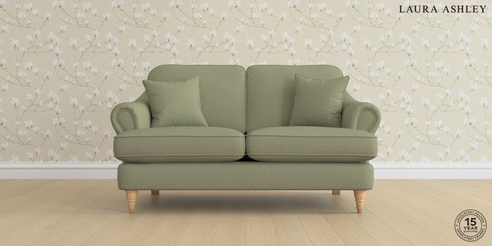 7.0.3 Buy Ambersham by Laura Ashley 2 Seater Small Sofa Edwin Herringbone Hedgerow Green Low Turned - Light Oak from the Next UK online shop Click here to use our accessible website
