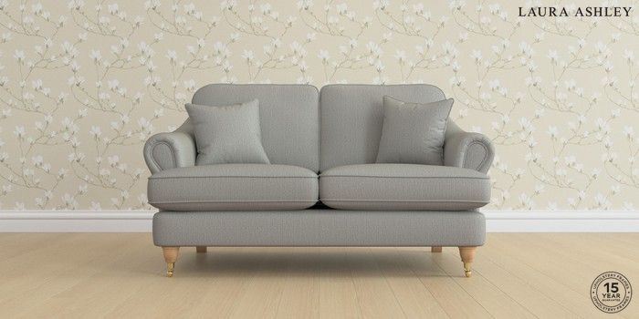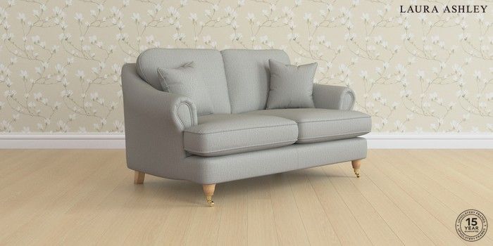 7.0.3 Buy Ambersham by Laura Ashley 2 Seater Small Sofa Edwin Herringbone Pale Steel Grey Low Brass Castor - Light Oak from the Next UK online shop Click here to use our accessible website