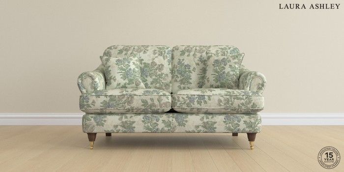 7.0.3 Buy Ambersham by Laura Ashley 2 Seater Small Sofa Ellerby Seaspray Blue Low Brass Castor - Chestnut from the Next UK online shop Click here to use our accessible website