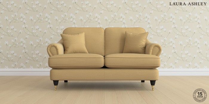 7.0.3 Buy Ambersham by Laura Ashley 2 Seater Small Sofa Kinsham Ochre Yellow Low Brass Castor - Black from the Next UK online shop Click here to use our accessible website