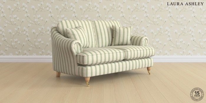 7.0.3 Buy Ambersham by Laura Ashley 2 Seater Small Sofa Kinsham Stripe Hedgerow Green Low Brass Castor - Light Oak from the Next UK online shop Click here to use our accessible website