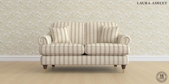 7.0.3 Buy Ambersham by Laura Ashley 2 Seater Small Sofa Kinsham Stripe Natural Low Brass Castor - Chestnut from the Next UK online shop Click here to use our accessible website