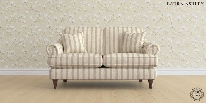 7.0.3 Buy Ambersham by Laura Ashley 2 Seater Small Sofa Kinsham Stripe Natural Low Turned - Chestnut from the Next UK online shop Click here to use our accessible website