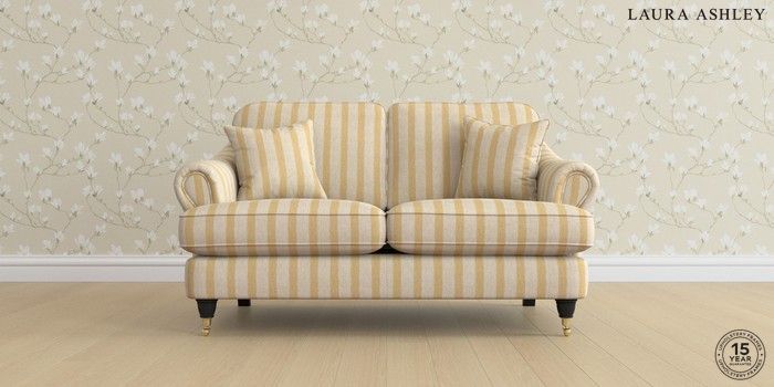 7.0.3 Buy Ambersham by Laura Ashley 2 Seater Small Sofa Kinsham Stripe Ochre Yellow Low Brass Castor - Black from the Next UK online shop Click here to use our accessible website