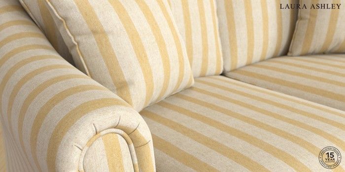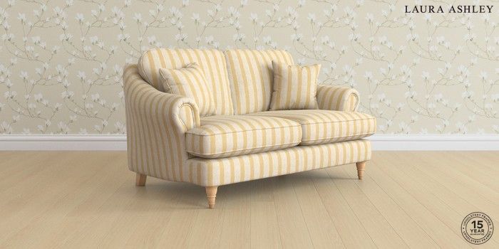 7.0.3 Buy Ambersham by Laura Ashley 2 Seater Small Sofa Kinsham Stripe Ochre Yellow Low Turned - Light Oak from the Next UK online shop Click here to use our accessible website
