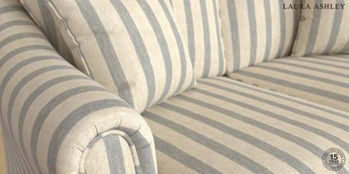 7.0.3 Buy Ambersham by Laura Ashley 2 Seater Small Sofa Kinsham Stripe Seaspray Blue Low Brass Castor - Chestnut from the Next UK online shop Click here to use our accessible website