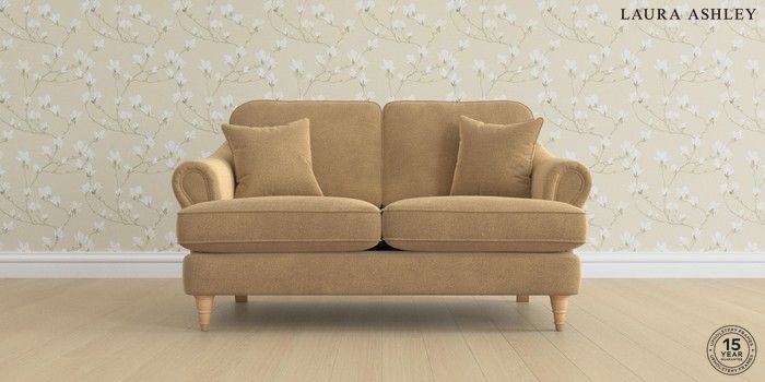 7.0.3 Buy Ambersham by Laura Ashley 2 Seater Small Sofa Lundar Chenille Caramel Natural Low Turned - Light Oak from the Next UK online shop Click here to use our accessible website