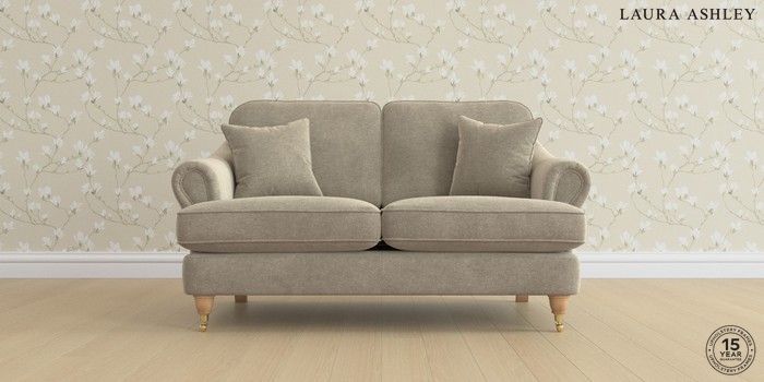 7.0.3 Buy Ambersham by Laura Ashley 2 Seater Small Sofa Lundar Chenille Truffle Natural Low Brass Castor - Light Oak from the Next UK online shop Click here to use our accessible website