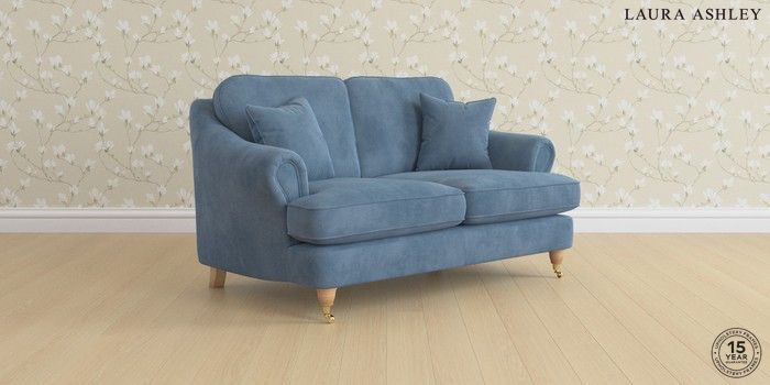 7.0.3 Buy Ambersham by Laura Ashley 2 Seater Small Sofa Orla Seaspray Blue Low Brass Castor - Light Oak from the Next UK online shop Click here to use our accessible website