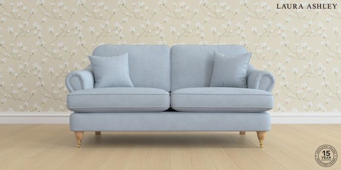 7.0.3 Buy Ambersham by Laura Ashley 3 Seater Small Sofa Ailsworth Newport Blue Low Brass Castor - Light Oak from the Next UK online shop Click here to use our accessible website
