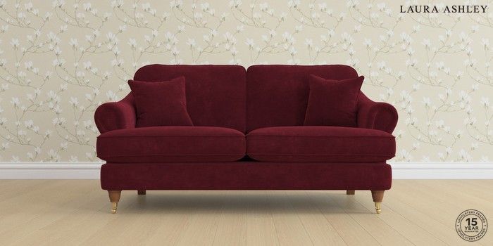 7.0.3 Buy Ambersham by Laura Ashley 3 Seater Small Sofa Alwyn Velvet Burgundy Red Low Brass Castor - Teak from the Next UK online shop Click here to use our accessible website