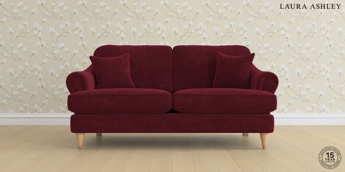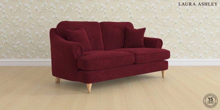 7.0.3 Buy Ambersham by Laura Ashley 3 Seater Small Sofa Alwyn Velvet Burgundy Red Low Turned - Light Oak from the Next UK online shop Click here to use our accessible website