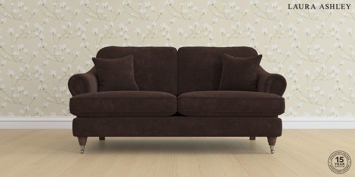 7.0.3 Buy Ambersham by Laura Ashley 3 Seater Small Sofa Alwyn Velvet Chocolate Brown Low Chrome Castor - Chestnut from the Next UK online shop Click here to use our accessible website
