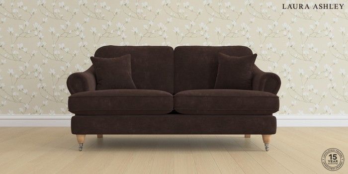 7.0.3 Buy Ambersham by Laura Ashley 3 Seater Small Sofa Alwyn Velvet Chocolate Brown Low Chrome Castor - Light Oak from the Next UK online shop Click here to use our accessible website
