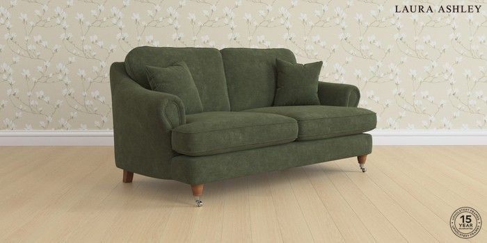7.0.3 Buy Ambersham by Laura Ashley 3 Seater Small Sofa Alwyn Velvet Ivy Green Low Chrome Castor - Teak from the Next UK online shop Click here to use our accessible website