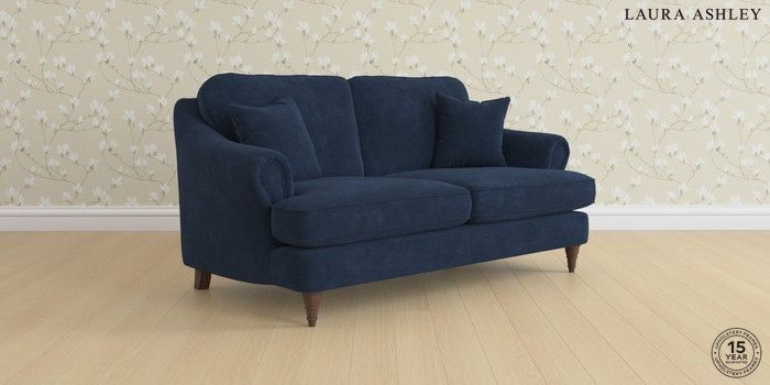 7.0.3 Buy Ambersham by Laura Ashley 3 Seater Small Sofa Alwyn Velvet Midnight Navy Low Turned - Chestnut from the Next UK online shop Click here to use our accessible website