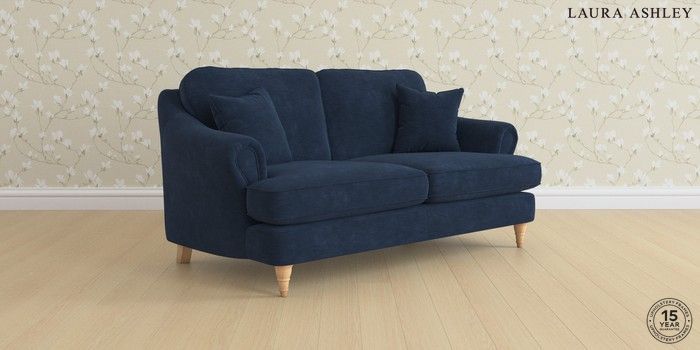 7.0.3 Buy Ambersham by Laura Ashley 3 Seater Small Sofa Alwyn Velvet Midnight Navy Low Turned - Light Oak from the Next UK online shop Click here to use our accessible website