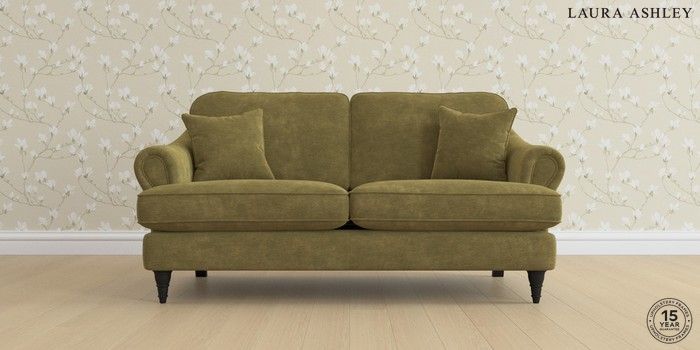 7.0.3 Buy Ambersham by Laura Ashley 3 Seater Small Sofa Alwyn Velvet Olive Green Low Turned - Black from the Next UK online shop Click here to use our accessible website