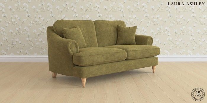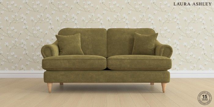 7.0.3 Buy Ambersham by Laura Ashley 3 Seater Small Sofa Alwyn Velvet Olive Green Low Turned - Light Oak from the Next UK online shop Click here to use our accessible website