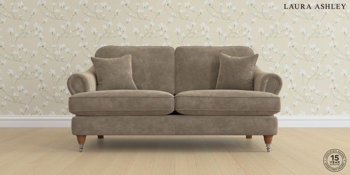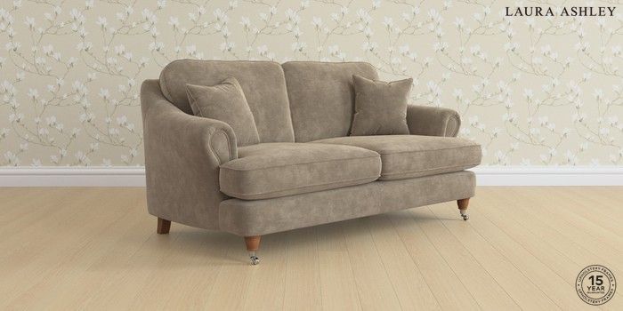 7.0.3 Buy Ambersham by Laura Ashley 3 Seater Small Sofa Alwyn Velvet Truffle Natural Low Chrome Castor - Teak from the Next UK online shop Click here to use our accessible website