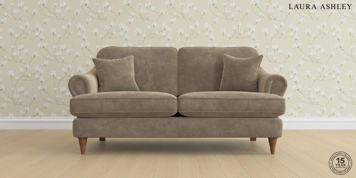 7.0.3 Buy Ambersham by Laura Ashley 3 Seater Small Sofa Alwyn Velvet Truffle Natural Low Turned - Teak from the Next UK online shop Click here to use our accessible website